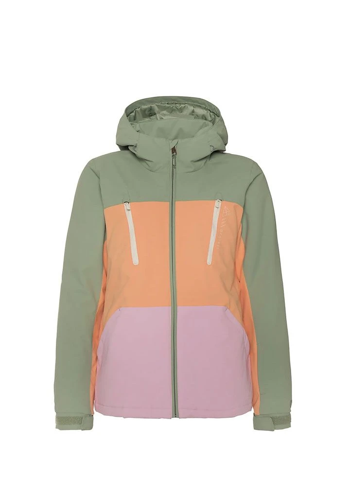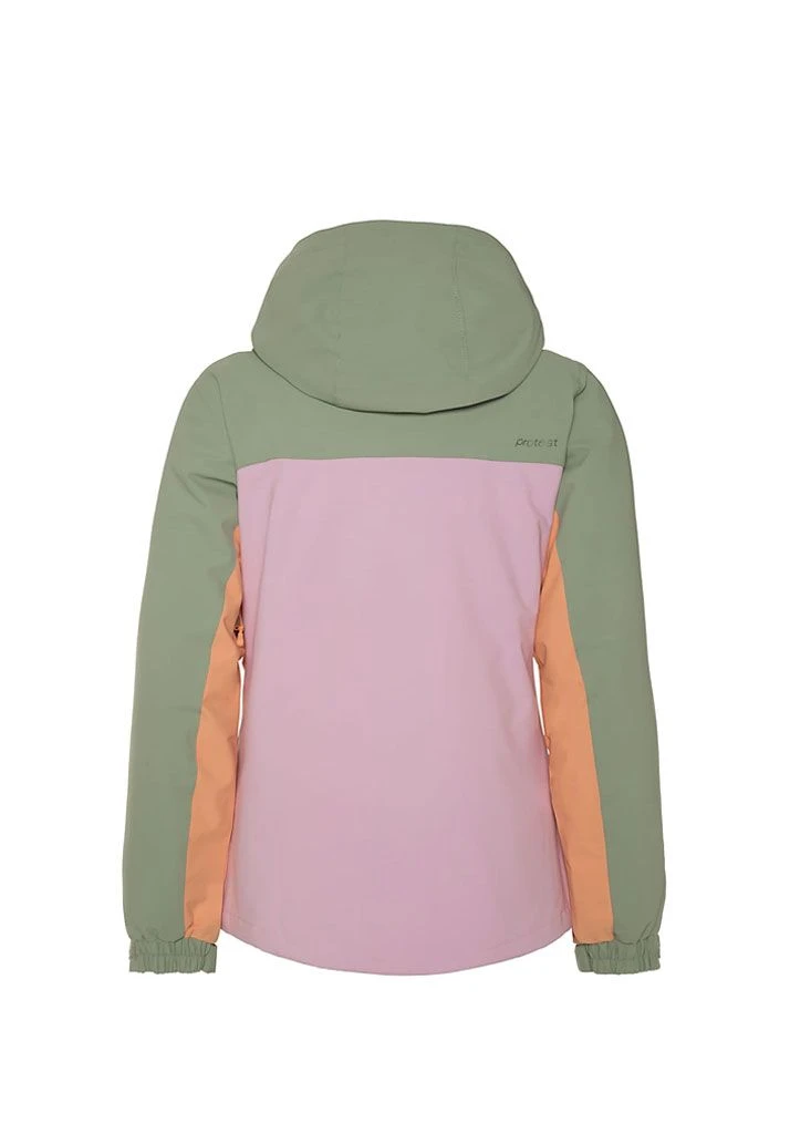 Meet the marvellous Prtbaow by Protest. This fantastic ski and snowboard jacket will have you standing out on the slopes. The Prtbaow is colour-blocked, made up of bands of colour. The outer fabric has 10K water resistance and 10g breathability, which means that while water is kept out from the outside of the jacket, moisture is allowed to escape from the inside. This jacket is PFC-free in an effort to reduce the detrimental effect that this chemical has on our health and the environment. We use an environmentally friendly waterproofing method. There are also ventilation zippers under the arms to help you regulate your body temperature. There are zippered side pockets and a lift pass pocket on the arm. The jacket you need for your adventures on the slopes, the Prtbaow by Protest.