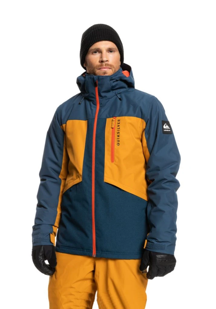With bright color blocks and statement metallics, the Dawson jacket knows how to get noticed. This warm men’s ski jacket offers a slim fit perfect for skiing and keeps you warm with 10K QUIKSILVER DryFlight® technology. The detachable hood and fold-down snow gaiter with automatic closures make it a perfect choice for the city, too.