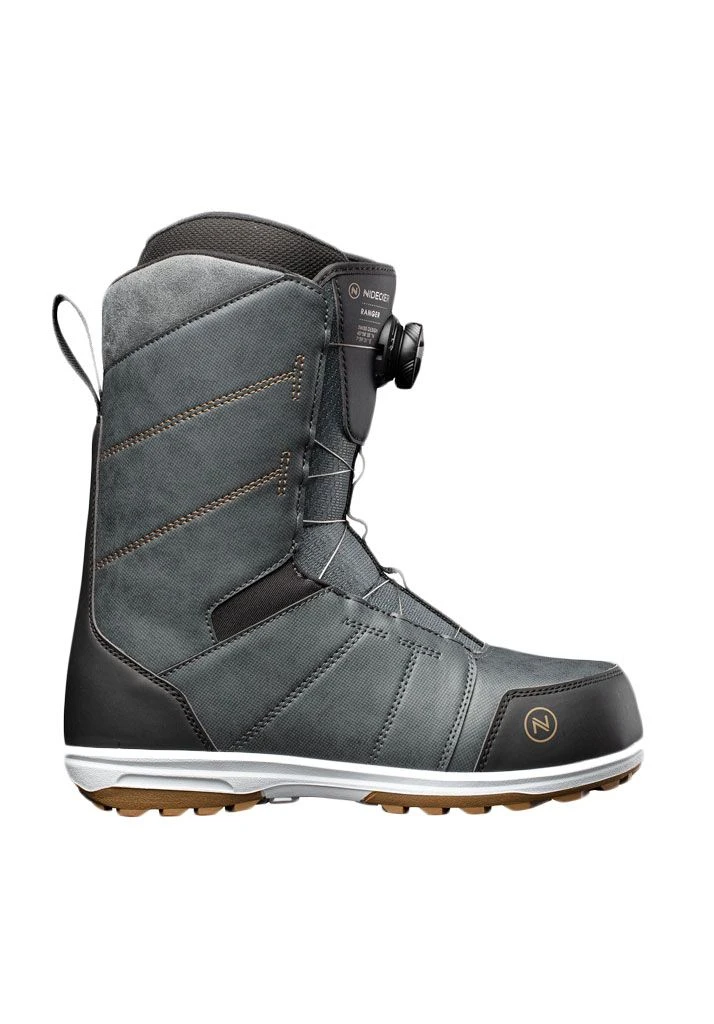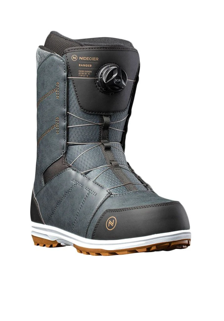 Our softest boot in the men’s line, the Ranger is forgiving enough for beginners yet comes with a bunch of premium features.The brand new Boa H4 dial is super tough and easy to operate even in gloves. With one lacing zone across the whole foot, you can tighten your boot in seconds and pop it open again instantly. Alongside the Ranger’s 3D molded liner, your foot will be held firmly in place to ensure efficient edge control with minimal rubbing or heel lift.This snug fit is carried through to the boot’s overall shape, which as part of our FlowFit system is designed to connect seamlessly with Nidecker’s classic two-strap or speed-entry bindings from Flow. The Ranger’s soft flex feels comfy right out of the box and is perfect for mastering your first turns or even getting to grips with surf style maneuvers that require you to get low.