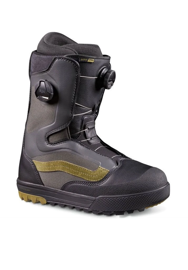 Featuring comfort, control, and style like only Vans can offer, the Men Aura Pro Snowboard Boots deliver on their versatile, hardworking reputation as the Boa® boot built to perform in all environments. They feature a dual-zone Custom Focus Boa Fit System for unlimited, on-the-fly micro-adjustability backed by the customizable comfort and heel hold of the Custom Slide Guide. Add in the V2 UltraCush™ Smartwool® liner and V2 Waffle Pro outsole, and the Aura Pro will exceed your expectations of comfort and performance.