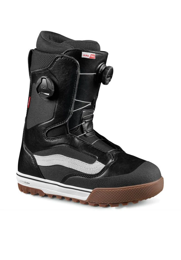Featuring comfort, control, and style like only Vans can offer, the Men Aura Pro Snowboard Boots deliver on their versatile, hardworking reputation as the Boa® boot built to perform in all environments. They feature a dual-zone Custom Focus Boa Fit System for unlimited, on-the-fly micro-adjustability backed by the customizable comfort and heel hold of the Custom Slide Guide. Add in the V2 UltraCush™ Smartwool® liner and V2 Waffle Pro outsole, and the Aura Pro will exceed your expectations of comfort and performance.