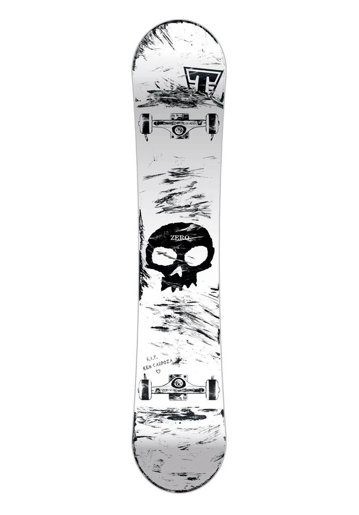 With a shape that turns on a dime, this board is made to jib, bonk, slide, shred, ride, slap, and pop off anything. Known for a damp feel and durable ride, the Scott Stevens Pro is a coveted board for creative riders looking for a more traditional twin tip shape in an advanced construction. The Scott Stevens Pro has been refined throughout its life. This current iteration features a lightweight and versatile P2 Superlight Core™, 4 x 30 mm Carbon Fiber Boosters, and a full-length Cork Edge-Dampening System. Often imitated but never duplicated, Scott Steven’s riding and personal style are without compare. As a master innovator and industry leader in new tricks, he has set himself apart in the snowboarding game. This twin-tip park destroyer is Scott’s TENTH pro-model on CAPiTA. It is a nod to his love for skateboarding, a dream collab with ZERO Skateboards, and features graphics done by the legendary Jamie Thomas.